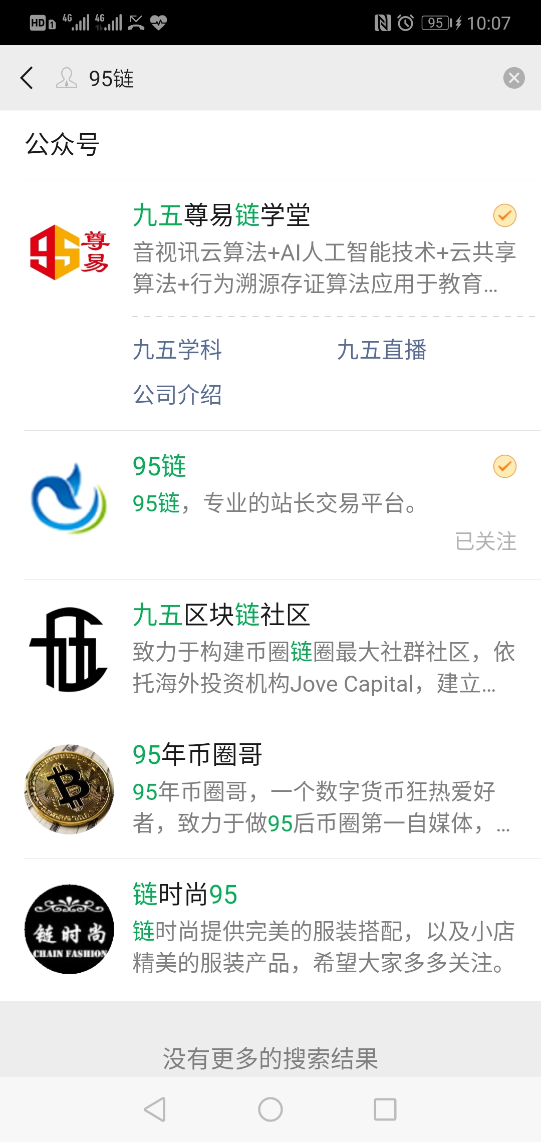 2. 在微信中搜索95鏈公眾號關注(如果已掃碼關注,此步請忽略)。